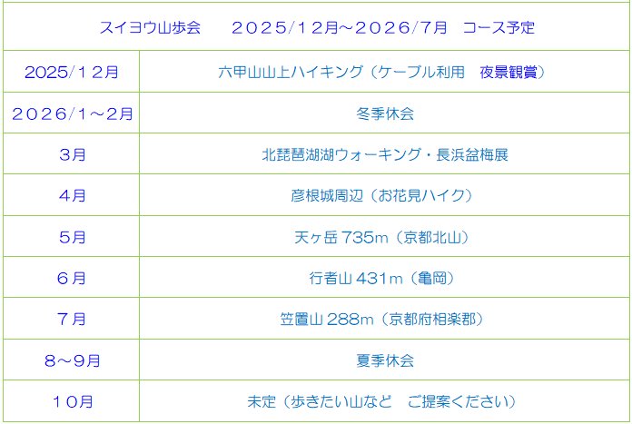 2025年 11月の紫明倶楽部 スイヨウ山歩会 のご案内