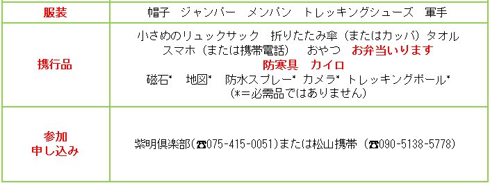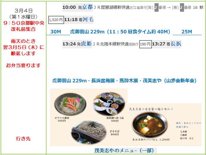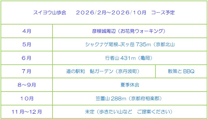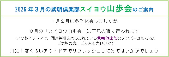 2026年 03月の紫明倶楽部 スイヨウ山歩会 のご案内